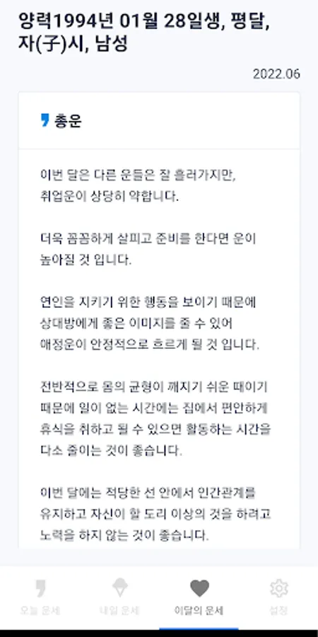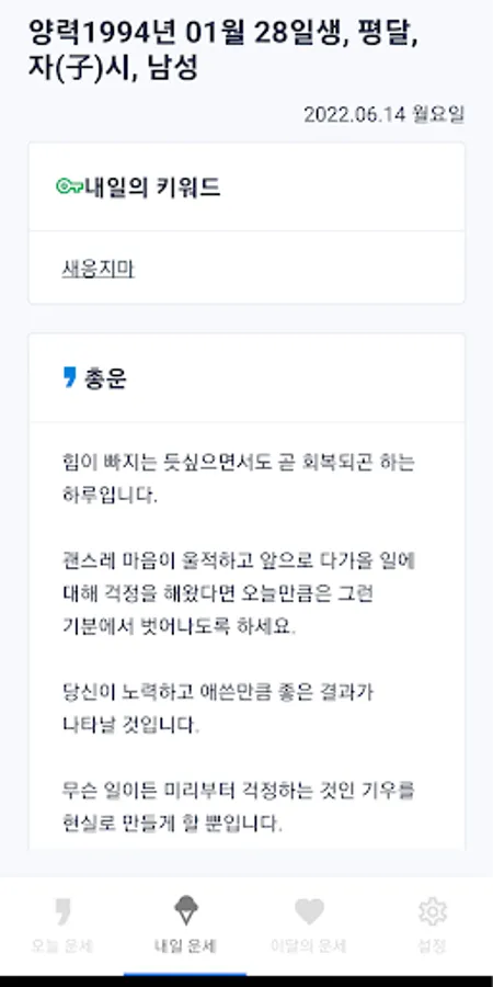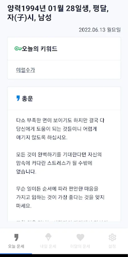 -Reminder service: Today's fortune notification service is provided at 7:00 every day
