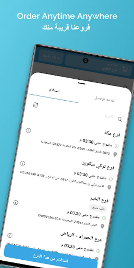 من أهم مميازات التطبيق أن يتيح لك معرفة مواقع الفروع المختلفة وأيضاً الإطلاع على قائمة الطعام المحدثة.