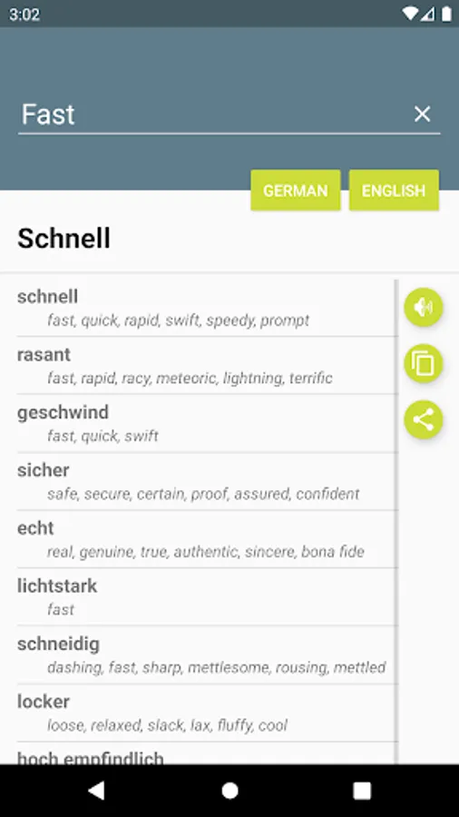 With the German-English dictionary you have immediate access to a huge database of words that is constantly being expanded.