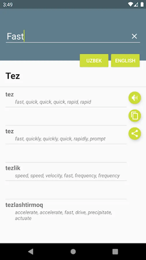 Interfeysni ishlatish juda oson va siz tarjima qilmoqchi bo'lgan so'zni yozishingiz kerak.