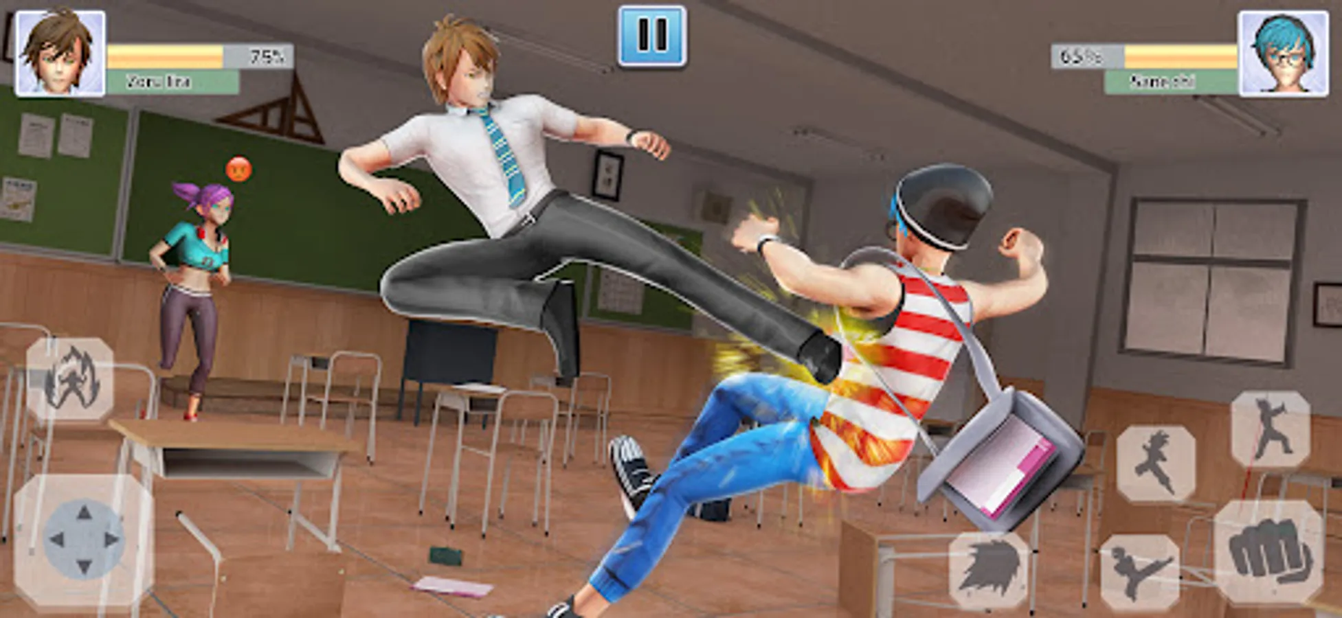 Be a trained karate fighter in high school and defeat all your bully enemies with kung fu fighting games skills. We welcome you to the karate high school game to experience a real karate brawl. Get ready to win the kung fu karate fight and show your actual power. You have to face tough competition because your enemies are real gangsters. You have to use your special attacks to fight against bullies in this fighting game. You are the one who will fight against the bully gang. Fight with them in high school with your unbeatable karate skills and help other students escape from terror. Accept all the kung fu challenges and beat the whole gang with your special attacks and karate moves. Show them who is the real kung fu master of karate fighting games. You have to do something for your high schoolmates. Be the fighter and beat all your bully rivals. Use different fighting styles to defeat your enemies. There are two groups of teen boys and girls, and you have to select one side. Choose your side and rule the high school.