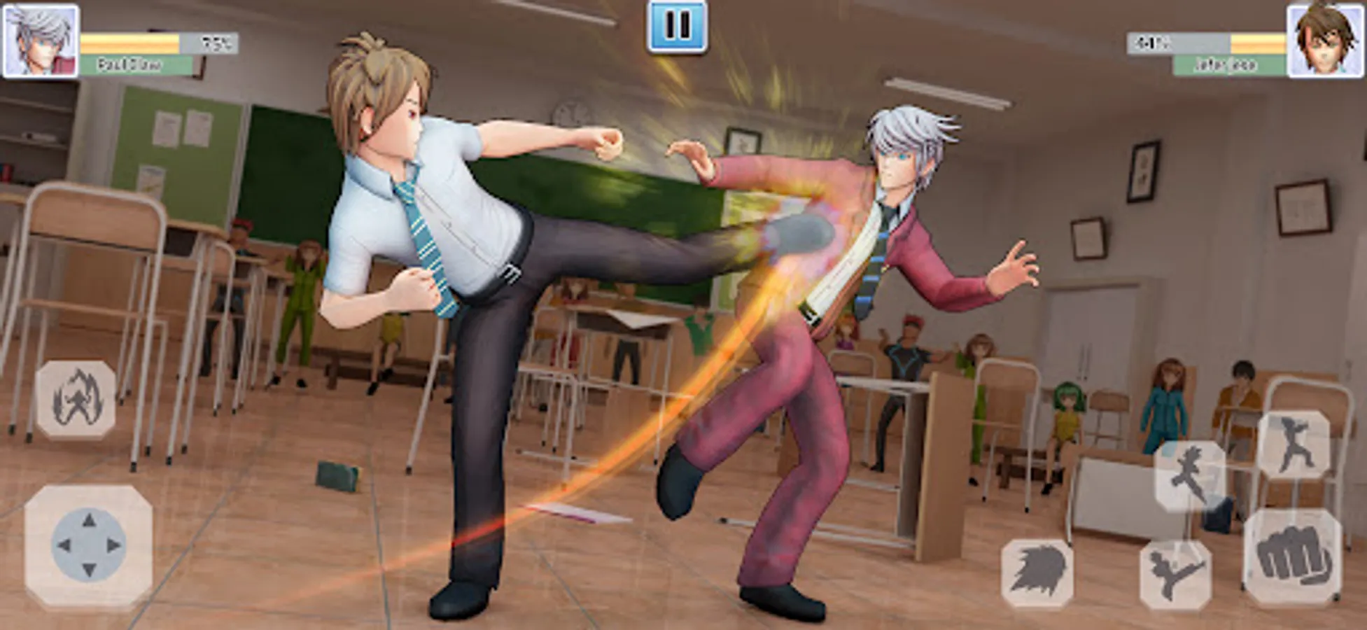 Get ready for some fun and overthrow your rivals with your action-packed moves. High school bully is not just a simple fighting game. You will experience the real faction fight between two groups. You have to fight like a real karate master to overthrow your bully enemies. In this bully gangster fighting game, you are just showing off your ability to fight against bad boys. You challenge bullies for a kung fu karate game face-off, and you have to win the fight. Beat them up with your special moves like extreme karate kicks and punches. In this high school gangster fighting game, you can test your boxing skills and knowledge about your karate moves. It's time to show that you are the real king of the high school brawl. Do you want to experience a real high school kung fu fight? All the fighters have their moves, karate skills, and numerous combos. Be an invincible karate fighter and show them no one can beat you in kung fu fighting game. Use special activities and punches to defeat your rivals and win stunning fights.