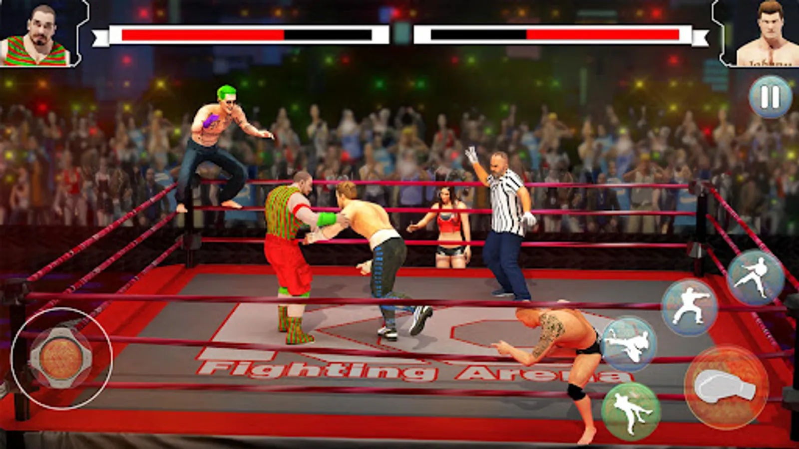 Imagine yourself as James and get ready to jump into the ring for fight and experience the most thrilling battle in this fighting arena game. Wrestling Superstars Extreme Fighting game is specially designed for extreme boxing, and kick games lovers. Fight against the top wrestlers from all around the world and enjoy ultimate fighter games to unleash your inner fighter. Easy gameplay with smooth controls will drive you insane. Free style players will enjoy this action-packed 3D fight game. Smack Down all wrestlers in this ultimate world of wrestling and become the world champion. Now this is the time to jump in the wrestling ring and unleash your skills. Experience real-life wrestling and take your skills to the next level. In this pro game, you will get a chance to fight against the best professional ring champions around the world. Beat your opponent by performing moves like chokeslam, leg slam and drop kick. It is the most adventurous fighting 3d games to enjoy reality like wrestling fights and experience world free style fighting, ring wrestling 3d animations, thrilling sounds and real fight styles.