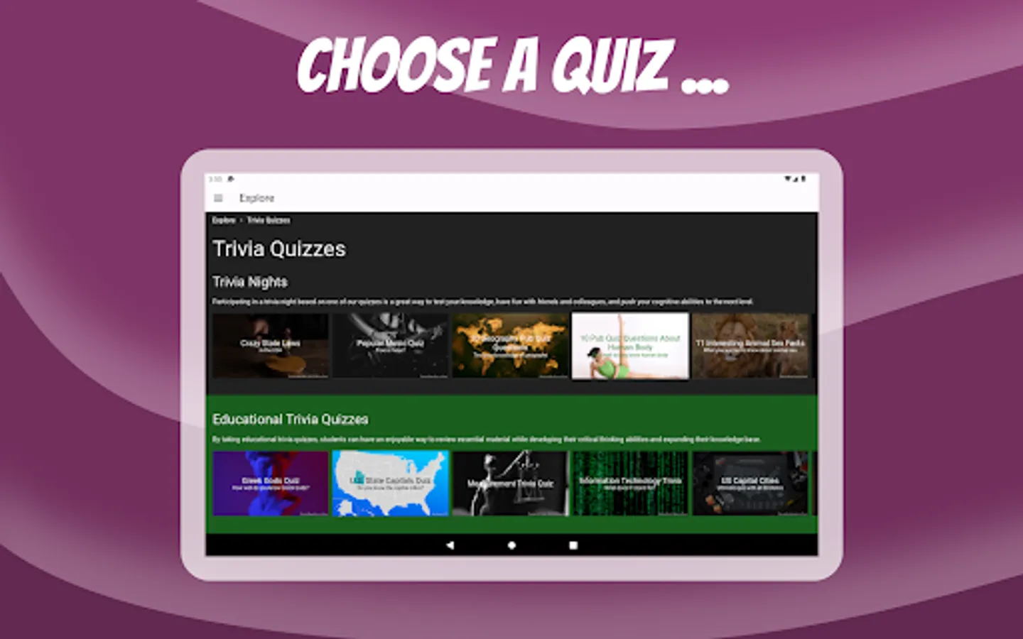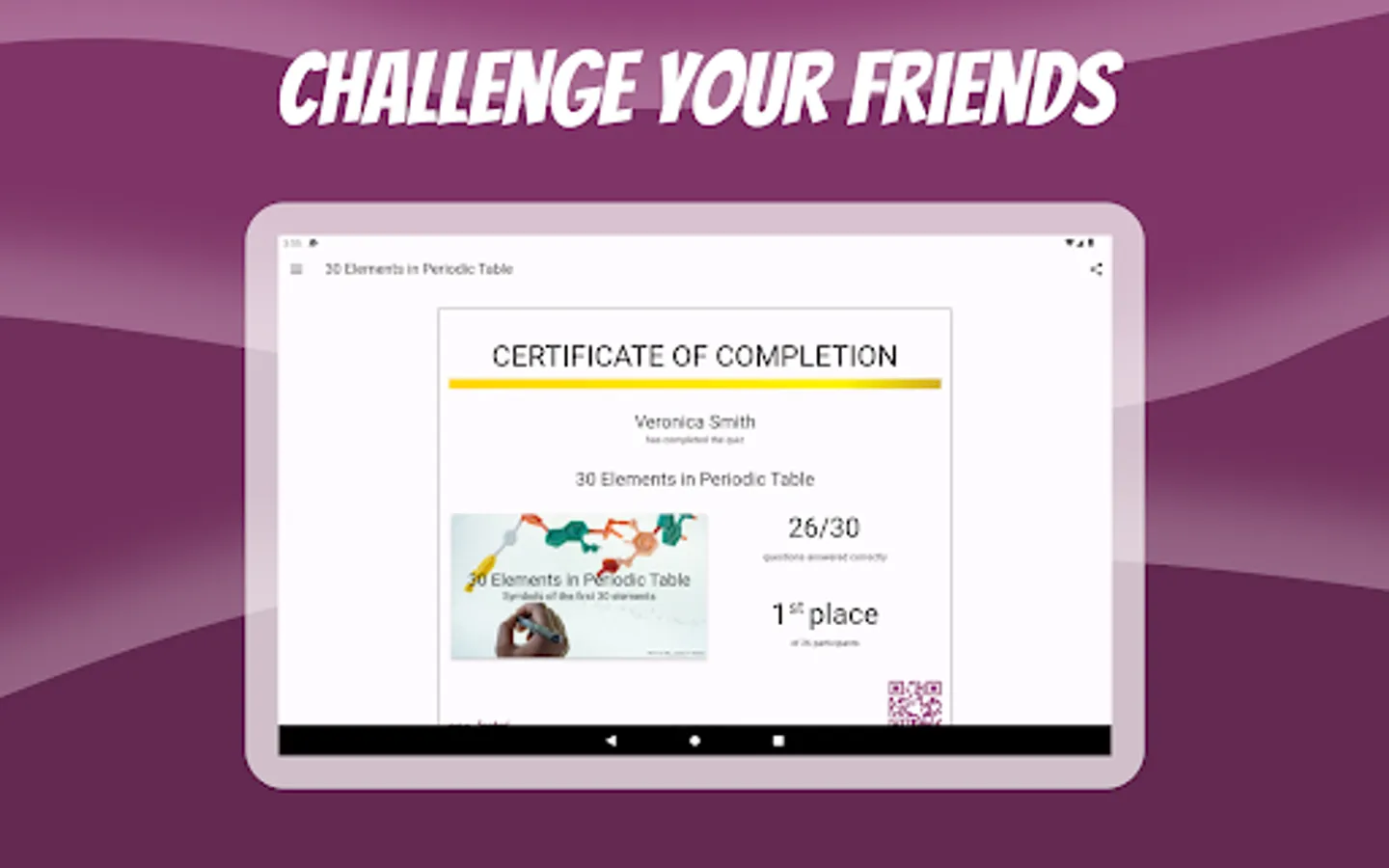 Create an interactive and engaging experience for your audience. Participants can join the quiz using a unique code, without the need for any app downloads or user accounts. They can access the quiz through their own devices, such as smartphones, laptops or tablets, and answer questions in real time. Even if someone misses the live event, you can share a link with them and they can complete the quiz at their own convenience.
