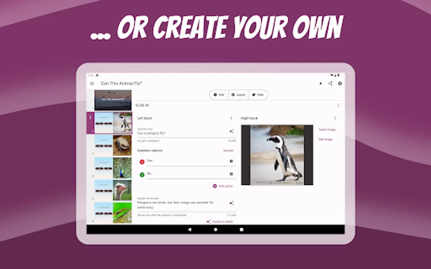 Faabul allows you to add explanations to your questions, providing immediate feedback and helping your audience understand and correct mistakes. For more in-depth understanding, text slides can be added for more detailed explanations that your audience can access only after it has been revealed.