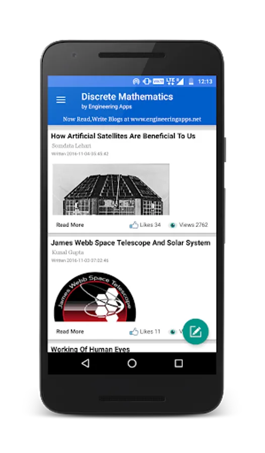 You can also blog about engineering technology, innovation, engineering startups, college research work, institute updates, Informative links on course materials & education programs from your smartphone or tablet or at http://www.engineeringapps.net/.