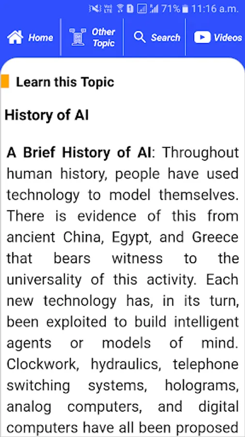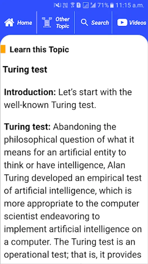 The app is a complete free handbook of Artificial Intelligence with diagrams and graphs. It is part of Computer science or software engineering education which brings important topics, notes, news & blog on the subject. The App serves as a quick reference guide on this engineering subject.