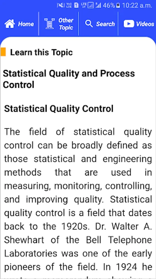 This useful App lists 88 topics with detailed notes, diagrams, equations, formulas & course material, the topics are listed in 5 chapters. In the app you will learn some important chapters such as total quality control material quality control, introduction of quality circle, quality characteristics, history of six sigma, definition of six sigma, control charts and use of control charts etc.