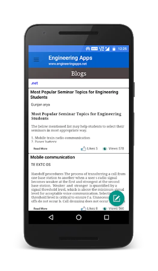 You can also blog about engineering technology, innovation, engineering startups, college research work, institute updates, Informative links on course materials & education programs from your smartphone or tablet or at http://www.engineeringapps.net/.