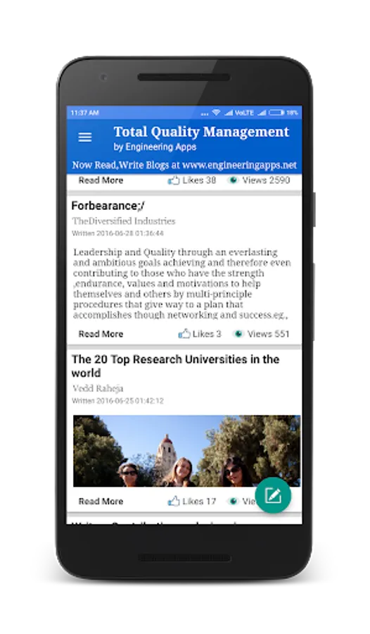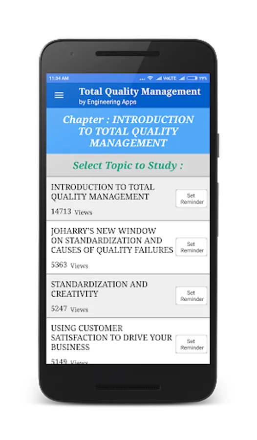 The app is a complete free handbook of Total Quality Management with diagrams and graphs. It is part of engineering education which brings important topics, notes, news & blog on the subject. Download the App as quick reference guide & ebook on this engineering subject.