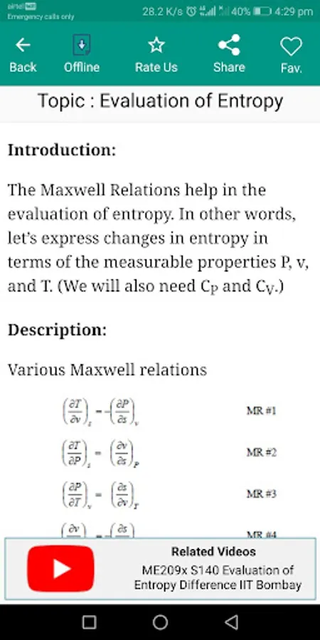 The app is a complete handbook of Applied Thermodynamics with diagrams and graphs. As a part of mechanical engineering, the app brings important topics, notes, news & blog on the subject. The App serves as a quick reference guide on chemistry, physics, mechanical & chemical engineering subject.