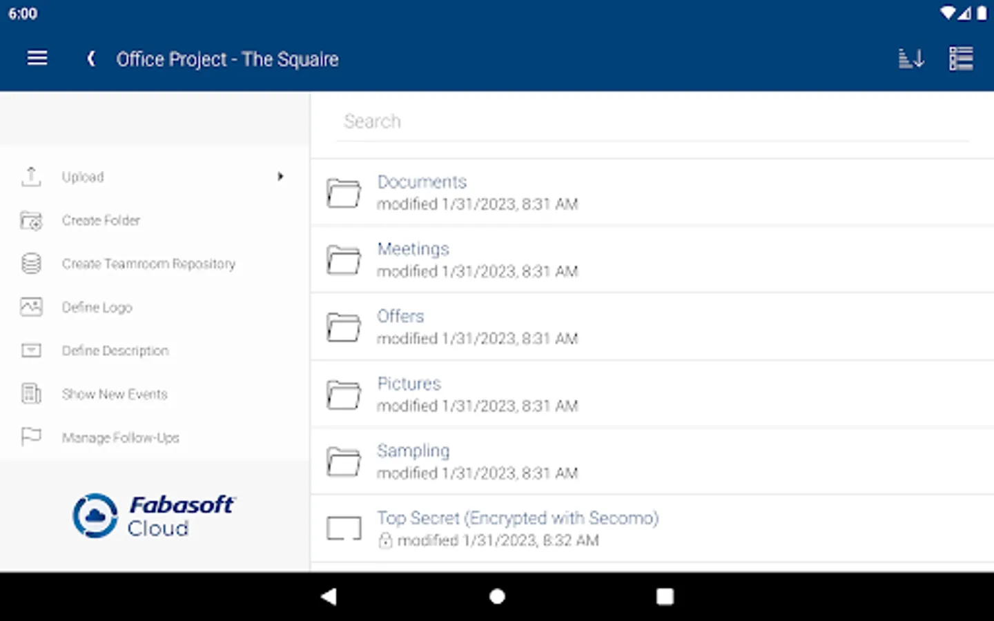 Do you want end-to-end encryption of documents in your team rooms for the highest security? The Fabasoft Cloud app will allow you to access Teamrooms that are encrypted using Secomo. Learn more about Secomo at https://www.fabasoft.com/secomo.