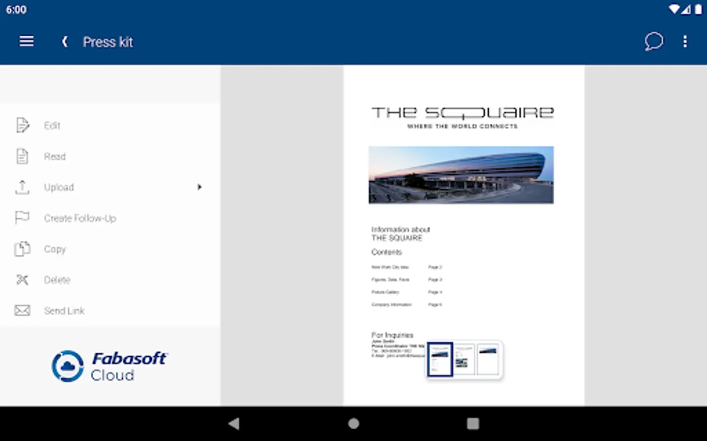 The Fabasoft Cloud app gives you access to your Teamrooms and data in the cloud. Wherever and whenever, securely and reliably. The app connects you with colleagues and external business partners on the go. Unlimited, mobile, and secure collaboration in the cloud.
