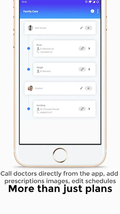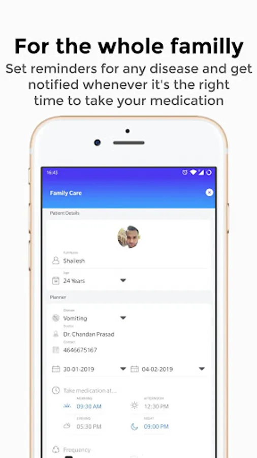 Place Teeka at the center of your family health care by adding members of your family to the service. Add a patient, describe the purpose of medication, add doctors and prescription images, specify time and you'll be good to go. Everything you need, to make sure you never another medication schedule again.