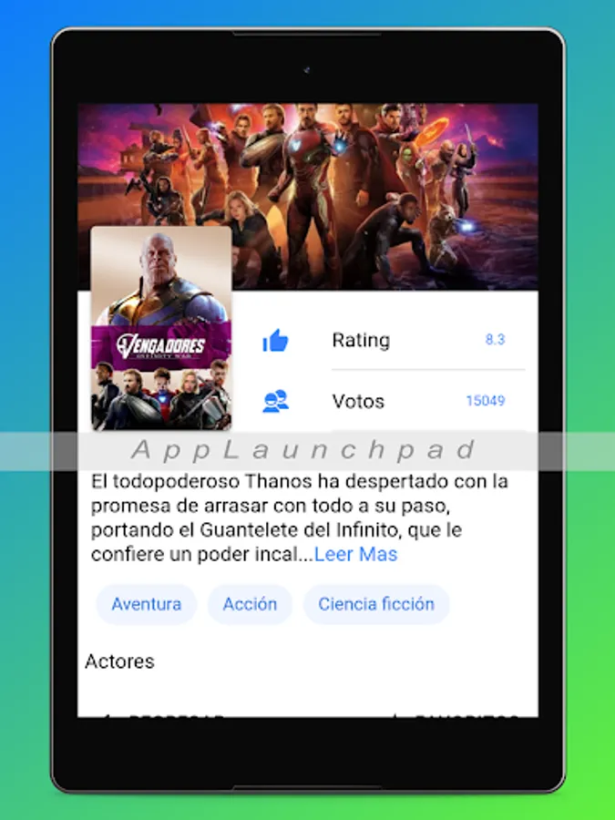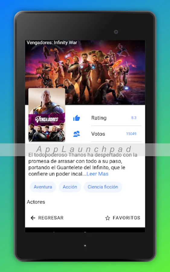 Here you can watch the latest news, find movies by name divided by genre and add the movies you like best to your favorites.