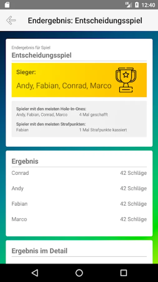The best Krolf App is here! It supports you on the field while recording the points. No tiresome writing more! The app supports you with a few steps in holding the points tally. She even takes you from the reckoning so that you can you concentrate on your game!