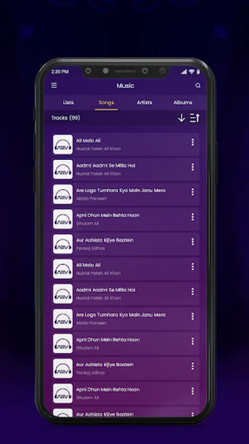 • Play your music by albums, artists, songs, playlists, folders, and album artists.