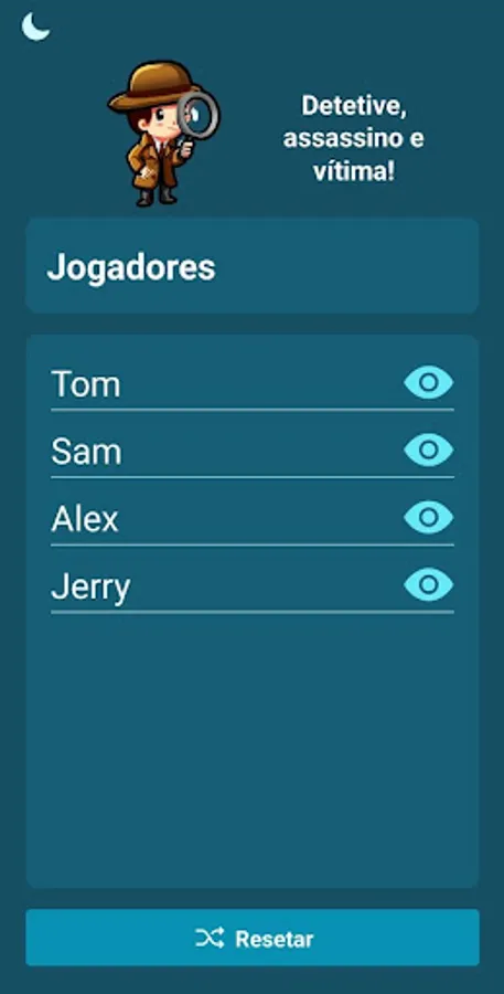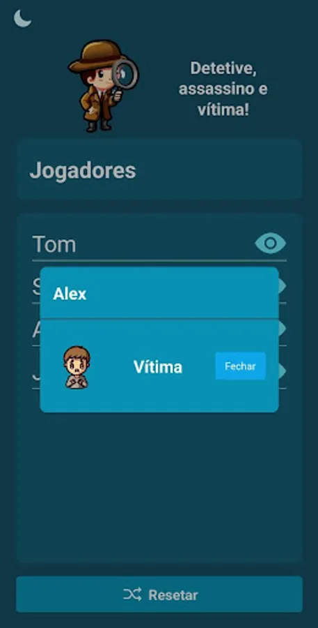 "Detective, Killer and Victim" is a social game where participants are given one of three roles: detective, killer or victim. The killer "kills" the victims with a secret wink, while the detective tries to identify the killer. The game continues until the detective guesses who the killer is or all the victims are "killed".