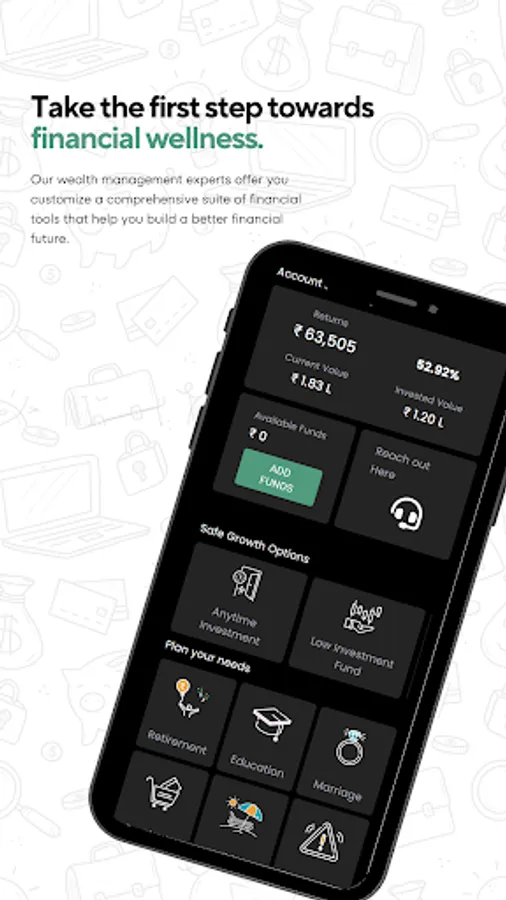 All you need to do is tell us your life goals, and we will create a personalized investment portfolio to help you attain them. Whether you want to design your dream retirement plan, buy a home, secure your kids' education, or get your hands on the new iPhone, we've got you covered. We are committed to powering your dream, no matter how big, through smart investments, no matter how small.