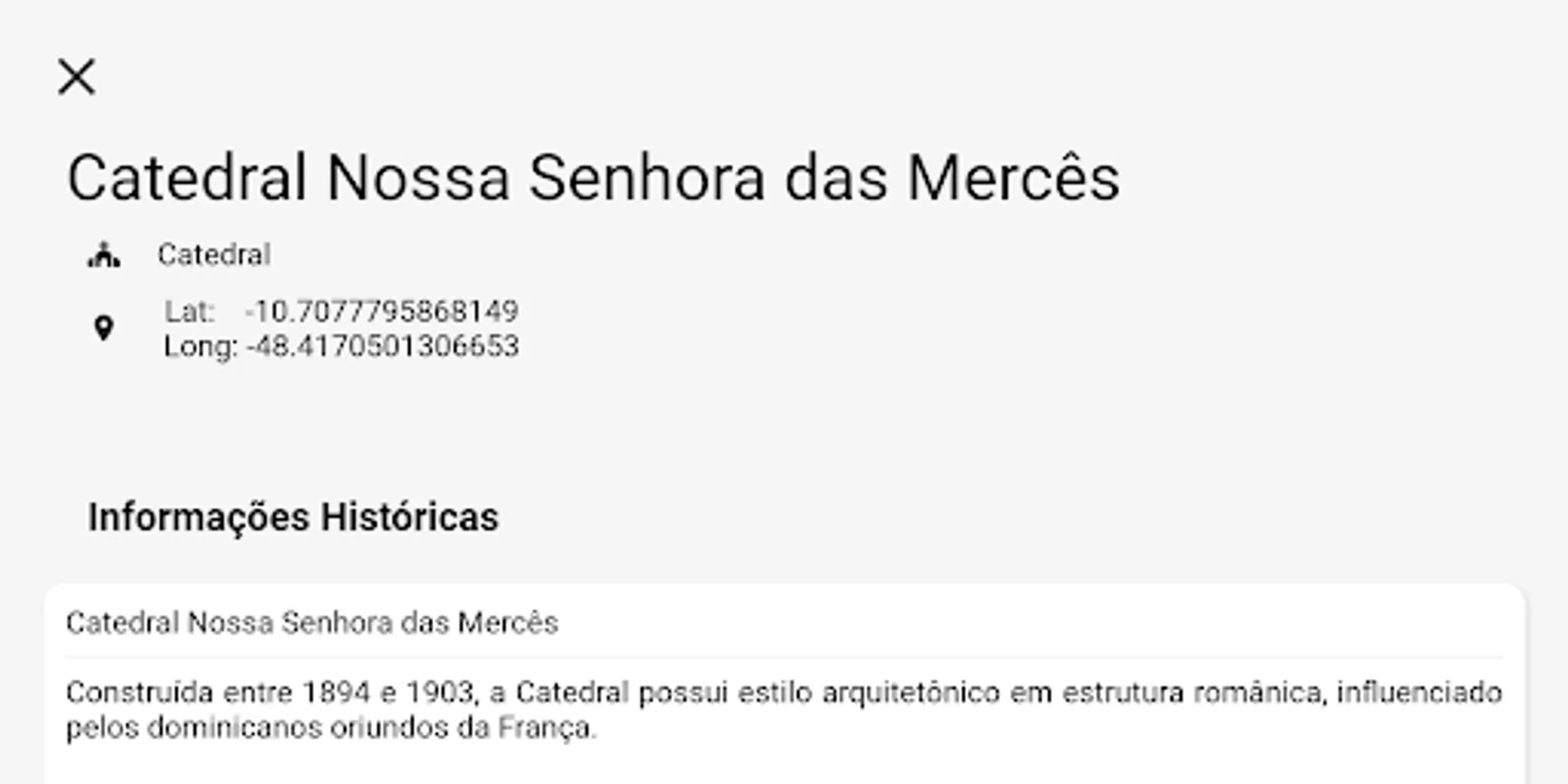 If you like Cultural Heritage, GeoPorTOur, is an invitation that takes you to know the historical and cultural heritage of Porto Nacional-TO. The app allows you to browse the city map, exploring each historical-cultural attraction, with information, location and images of the place, being able to make a virtual visit to the selected point. The Virtual Tour is a navigation through several images in 360 degrees, which makes it possible to view and navigate the entire route of the Geo-tourist Route, including streets, square, cathedral, museum and much more. Then, you can still test your knowledge by taking the quiz with questions about the various information on the Cultural Heritage of Porto Nacional, found in the Virtual Tour.