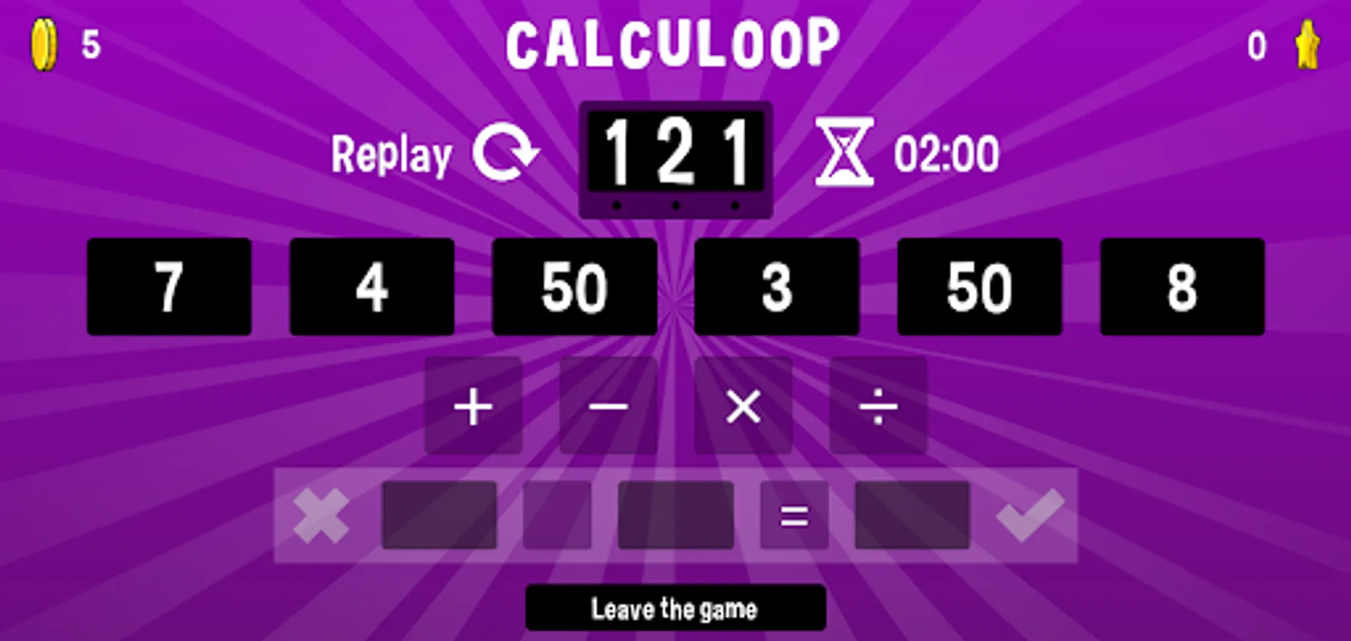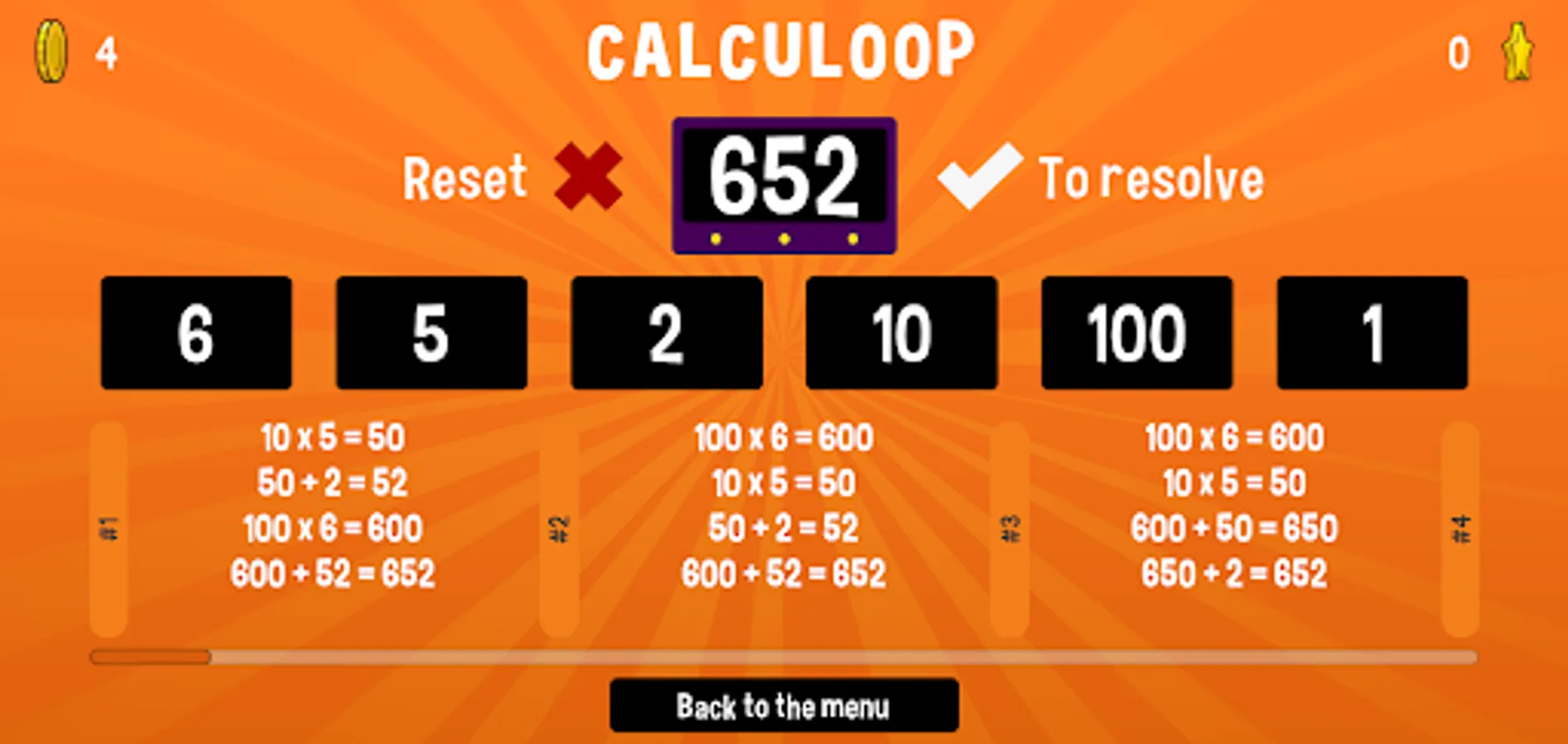 6 random numbers and 4 types of operations to find randomly drawn number.