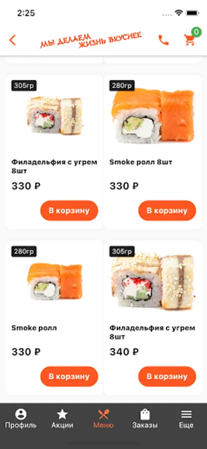 Always hot pizza, fresh and delicious sushi and rolls, as well as other products from our assortment - you can always order all this in our application.
