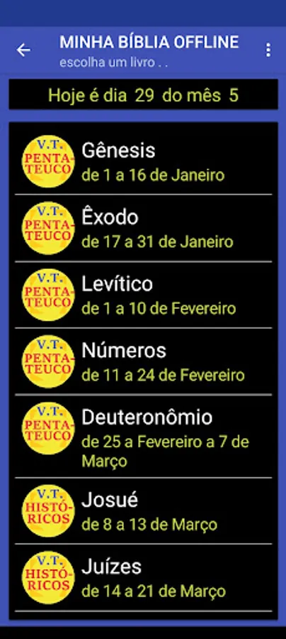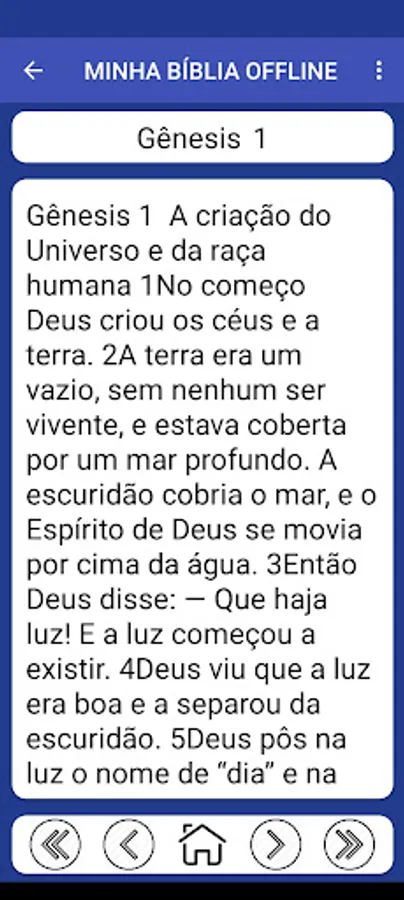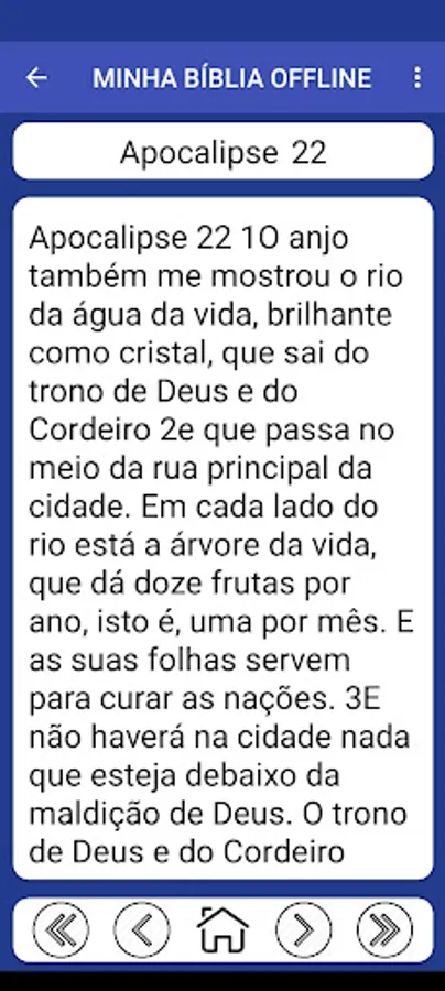 Have "My Bible Offline" on your mobile. It is The Holy Book of Christians. It's in Portuguese, offline, large print, easy navigation, tip for reading the entire Bible in one year!