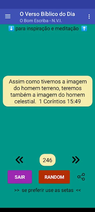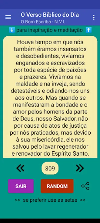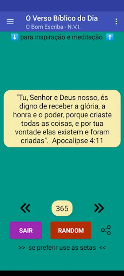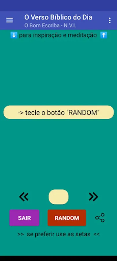 - When loading the text screen, press the "RANDOM" button and the app will draw one of the 380 verses. Every time you press the "RANDOM" button, a new verse will be displayed.