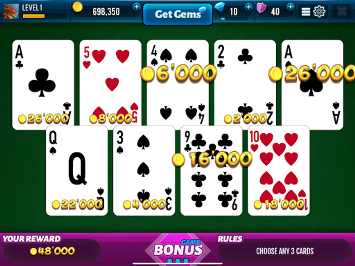 Additional bonus games: Wheel of Fortune & Nice cards.