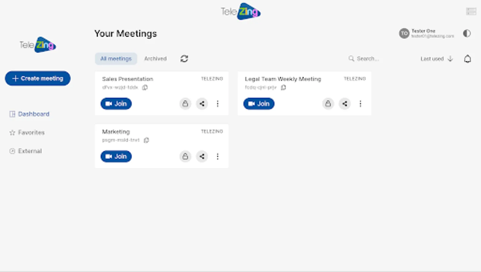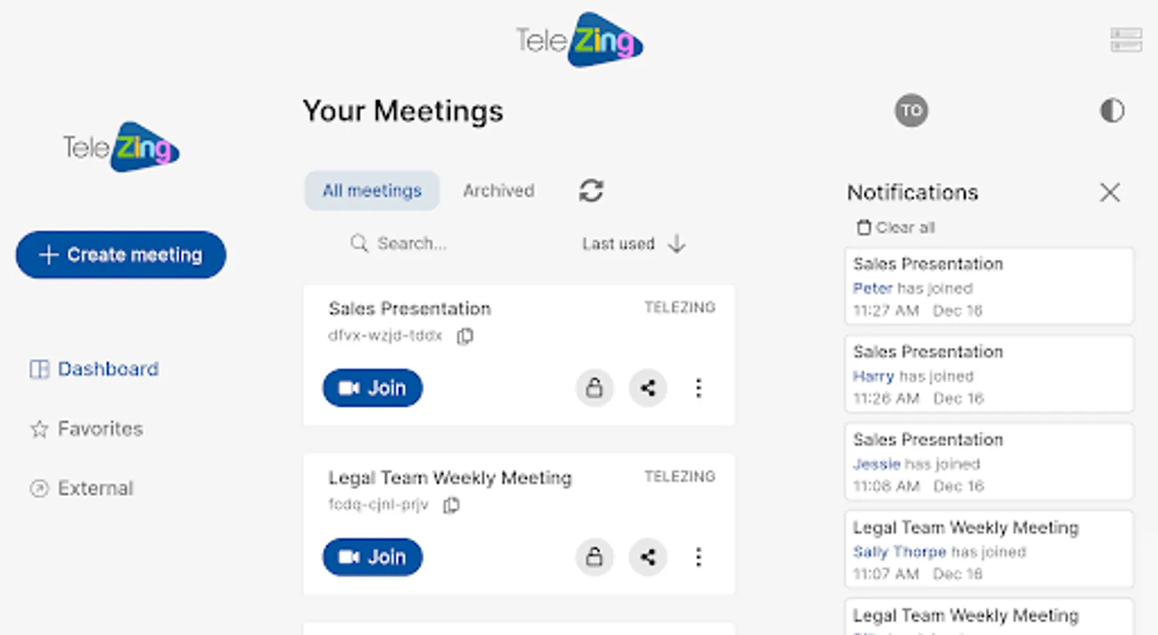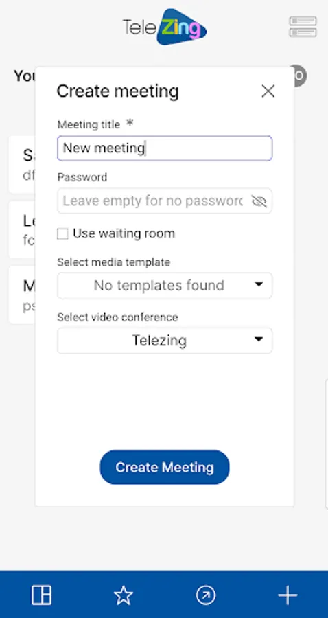 Receive notifications for meetings, create, update and share your TeleZing meetings.
