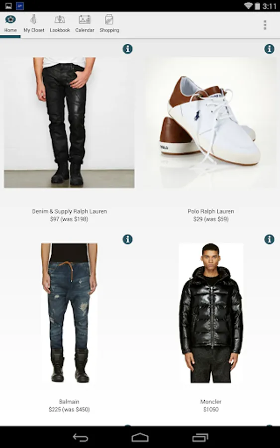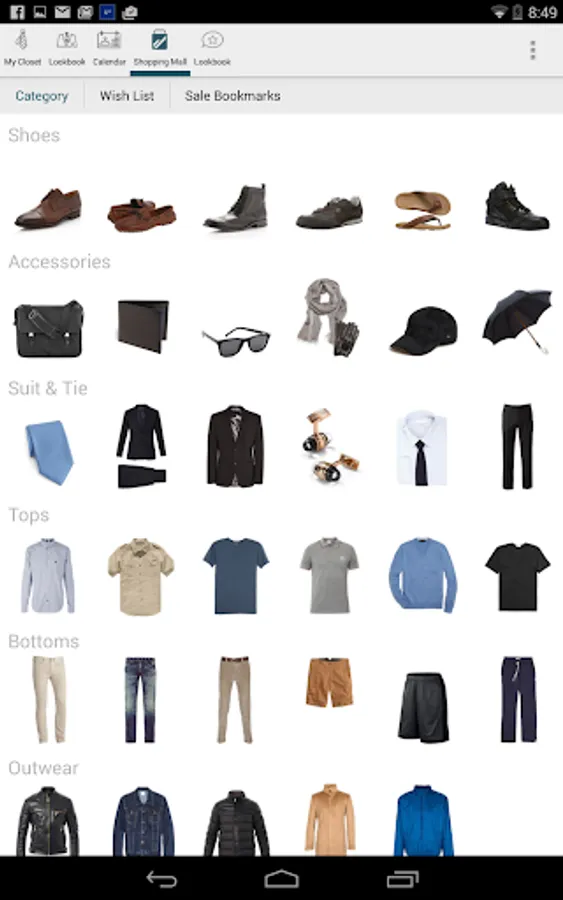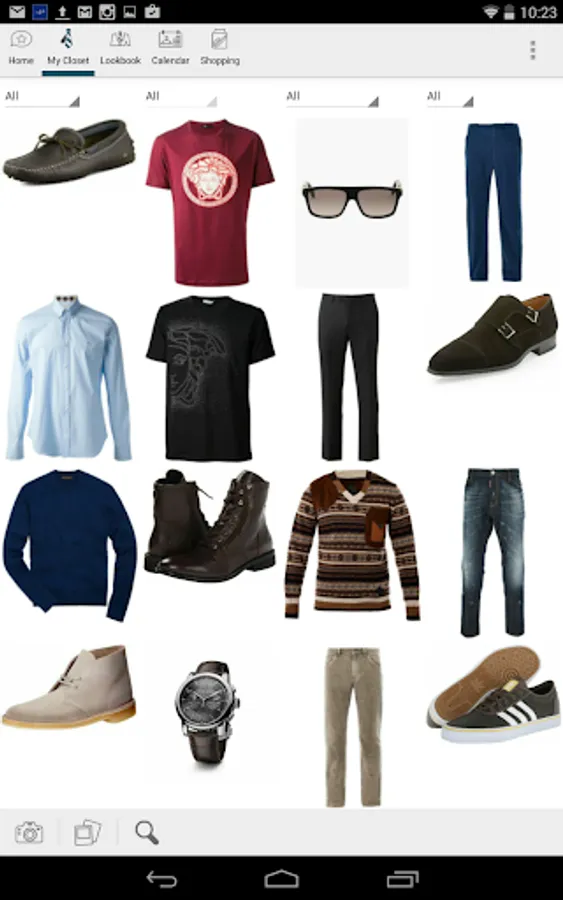 Snap the pictures of your clothes, shoes and accessories and store them in Mod Man. Use them to create looks or to plan what to wear.