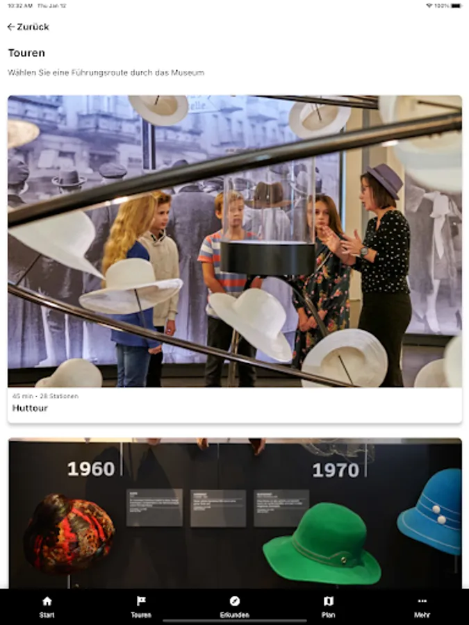 The hat museum app lets you prepare your visit to the exhibition in peace, offers you your own museum guide through the exhibition and enables you to read selected content at home. It also gives an insight into our other program.