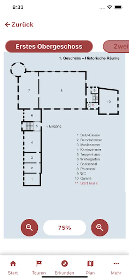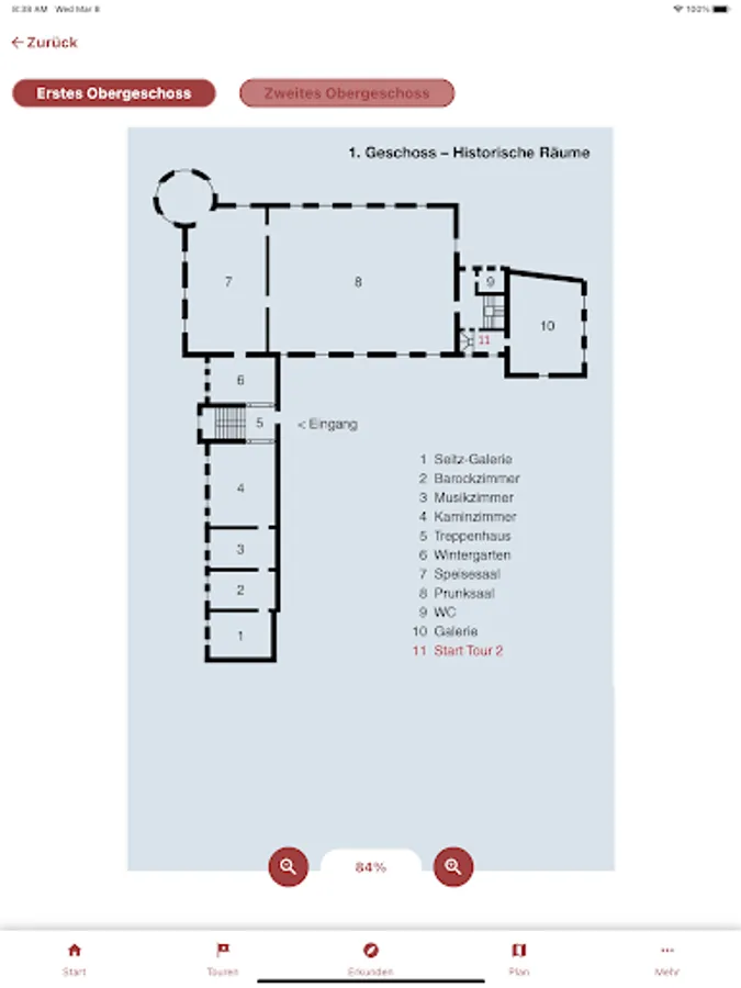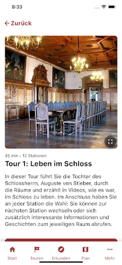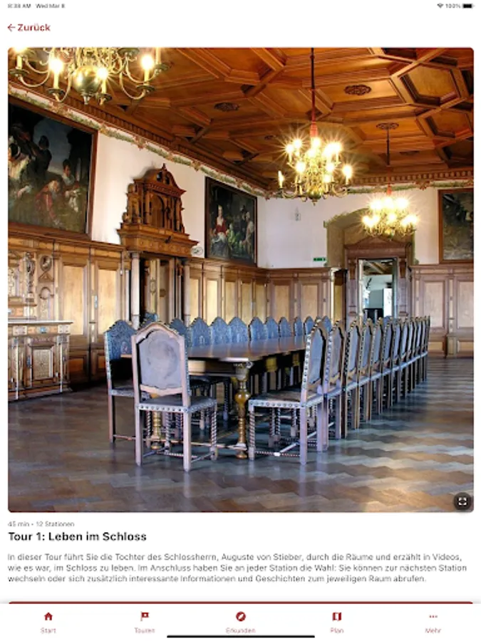 -Guided tour through the historical rooms with videos about life in the castle as well as texts and audios about the rooms