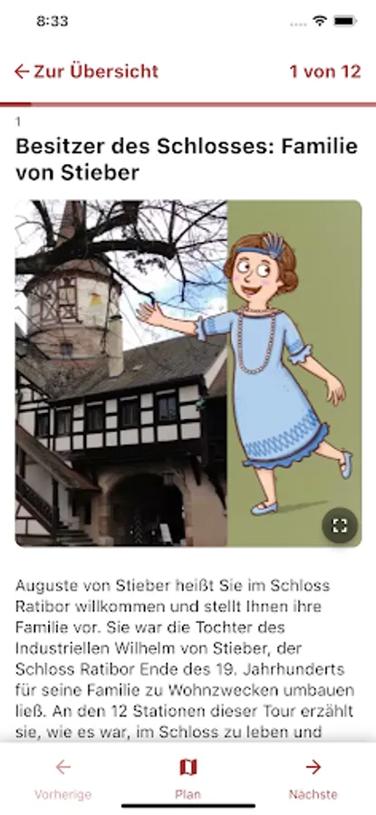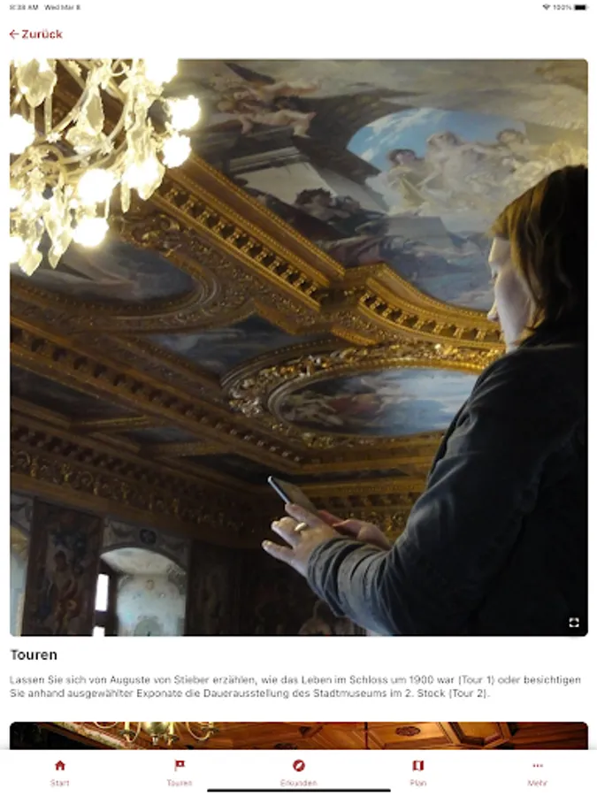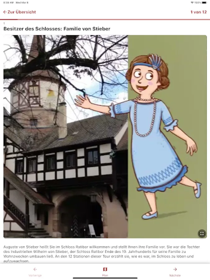 This app accompanies you during your visit. Let Auguste von Stieber tell you what life in the castle was like around 1900 or visit the permanent exhibition of the city museum on the 2nd floor with the help of selected exhibits. Of course, you can also explore the rooms yourself and call up information at selected stations. At the end of your visit, send a virtual postcard or yourself in the historical painting of the Stieber family.