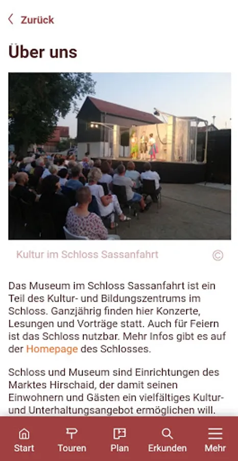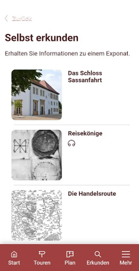 In the museum in Schloss Sassanfahrt you can experience up close how traveling and trading affected the place. The museum app supplements the permanent exhibition with videos, audios, comprehensive historical information and lots of pictures. Get on an exciting journey through the Regnitz valley!