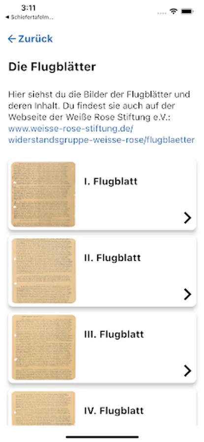 The app provides information about the White Rose resistance group