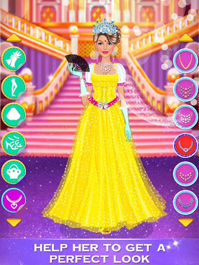 Go through the MakeUp and dressUp options to create a sparkling but breezy look. Click the doves to discover more dress-up options.
