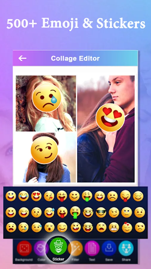 - A lot of background patterns,Stickers, emojis, texts, and photo frames will make your