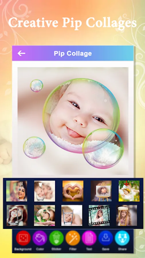 - Sets your photo inside PIP with some creative frames.
