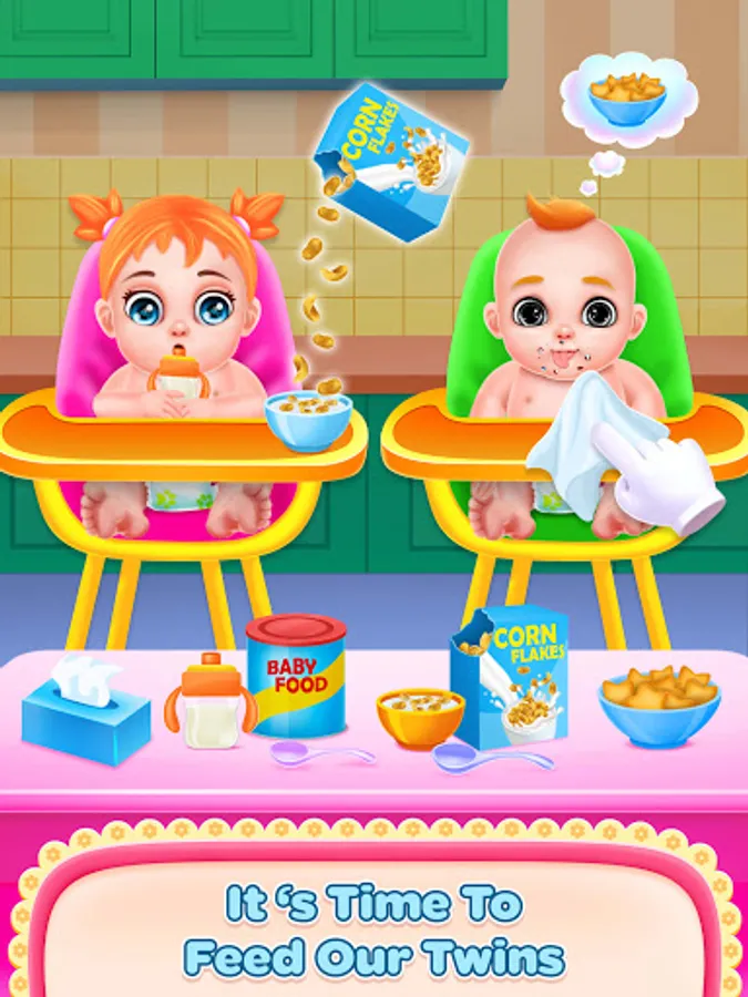 A variety of stylish outfits & cute tools are waiting for you in baby game of twin babies. Care your twin baby with food and meals to feed the baby in this babysitter game. Feed babies with milk, jam, mayo, fruits & cookies, coconut water. Feed hungry baby with snacks, shake & much more.