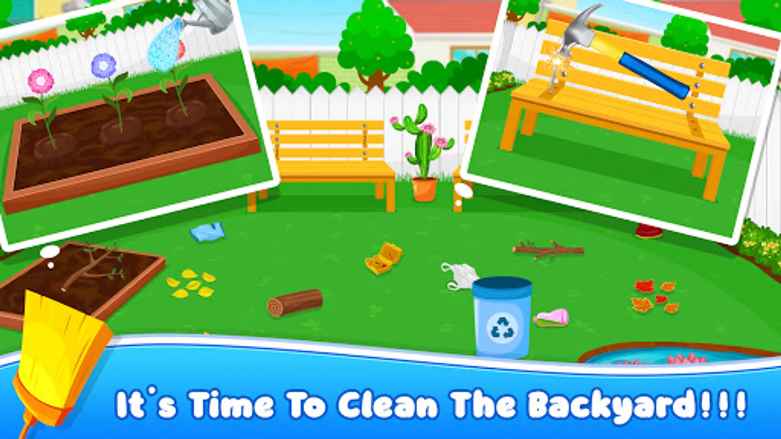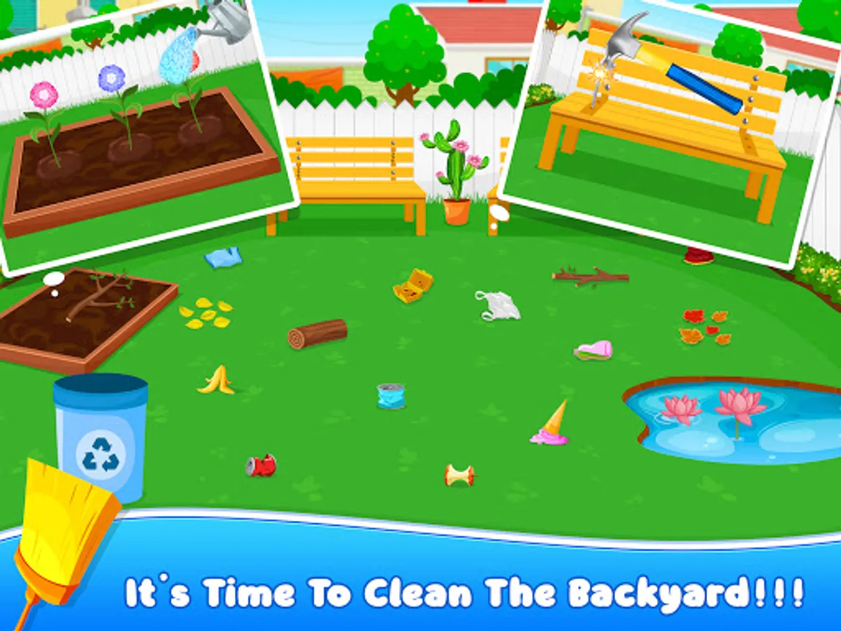 Start your cleaning journey in the backyard, where you'll find a mess of fallen leaves, scattered toys, and dirty surfaces. Grab your rake and broom to tidy up the area, making it a perfect spot for outdoor activities and relaxation. Don't forget to water the plants and arrange the furniture for an inviting atmosphere.