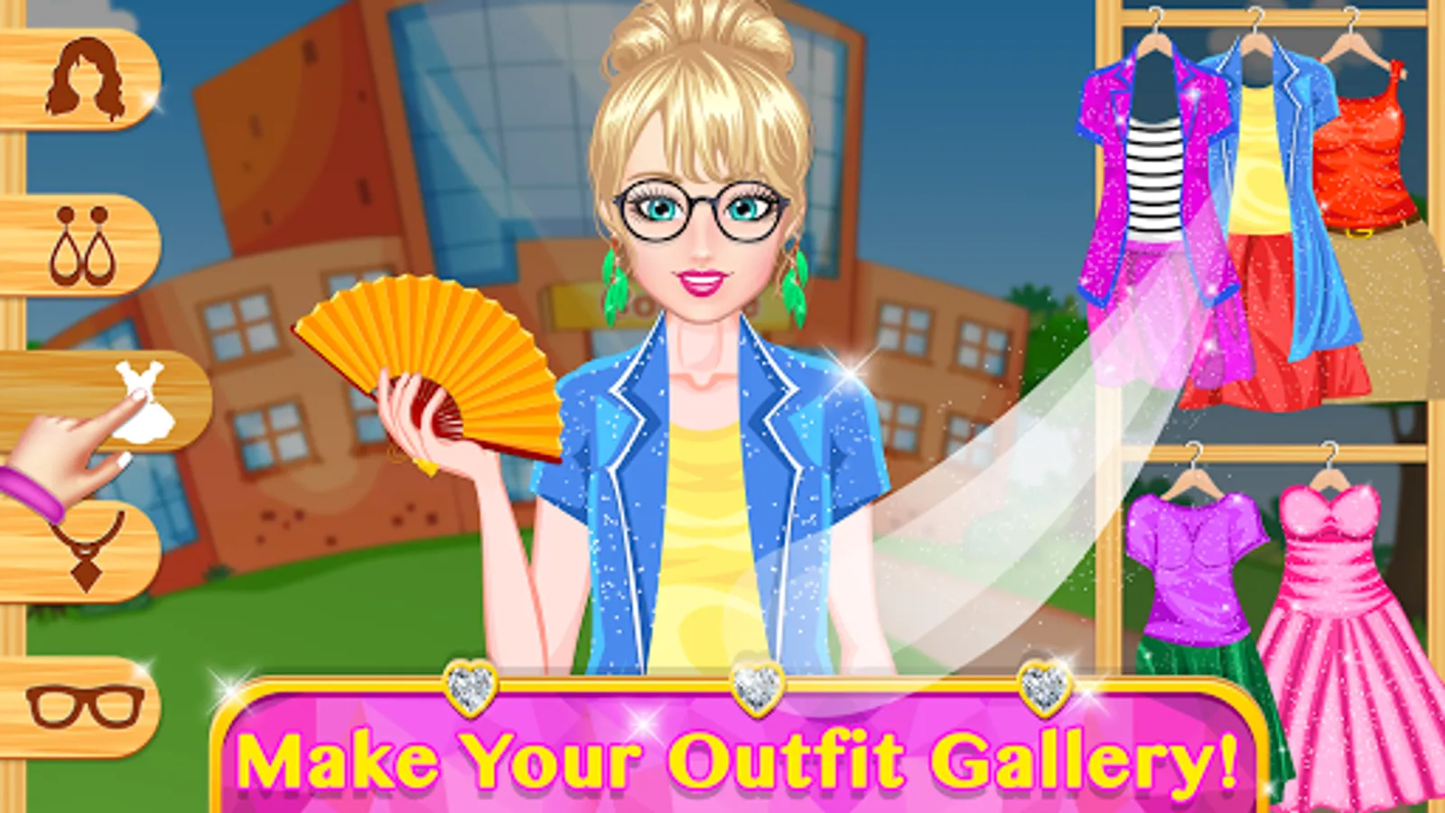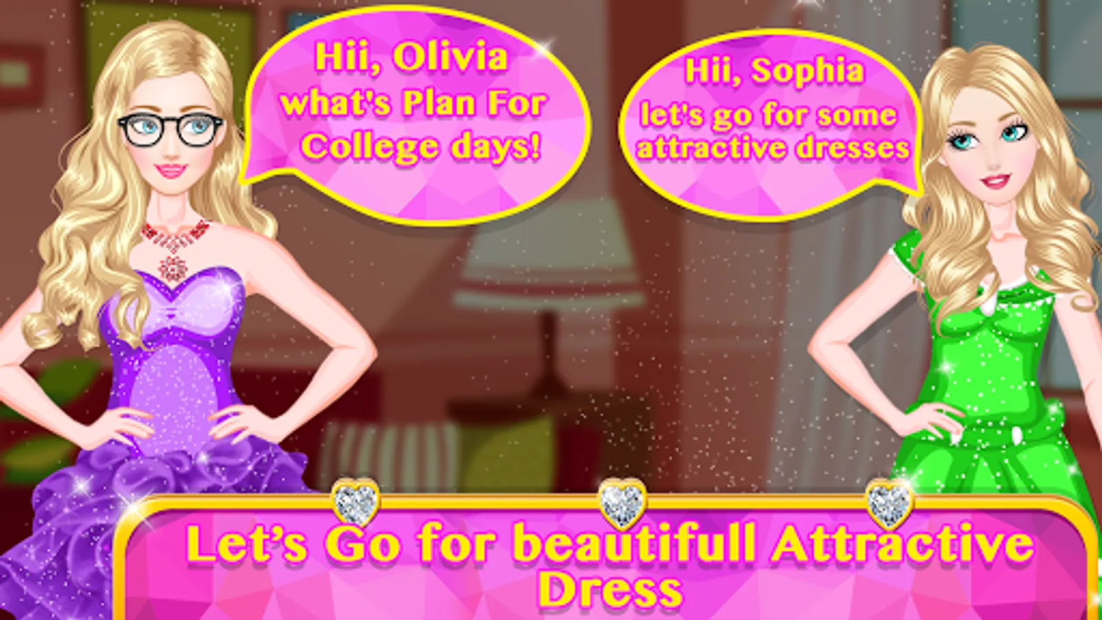 Play the game to look into their wardrobe and choose some fabulous outfits for each girl. A chic matched with a cute shirt and a coat, a polka dotted dress or a glitzy pink lace dress, there are so many options. Make sure to choose the perfect college outfit and then accessorise it. Have fun!