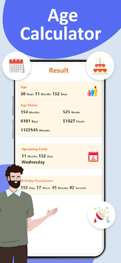 - The baby age calculator year & birthday countdown app works offline to help to know how old are you.