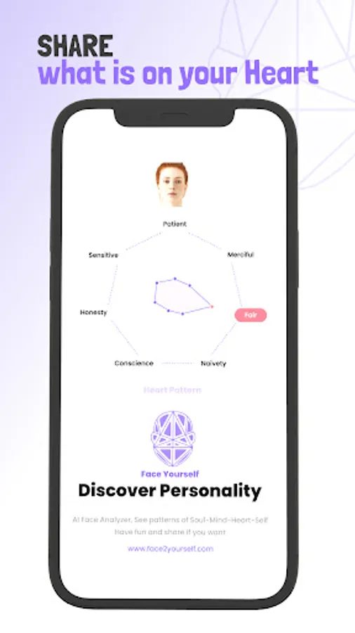 Face Yourself is an online-based mobile application that uniquely allows you to create your personality map from your facial lines.