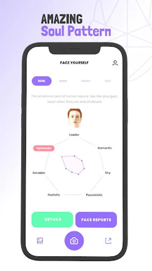 This app allows users to see the modeling of Personality Pattern Characteristics based on advanced neural network technology that technically analyzes your face instantly.