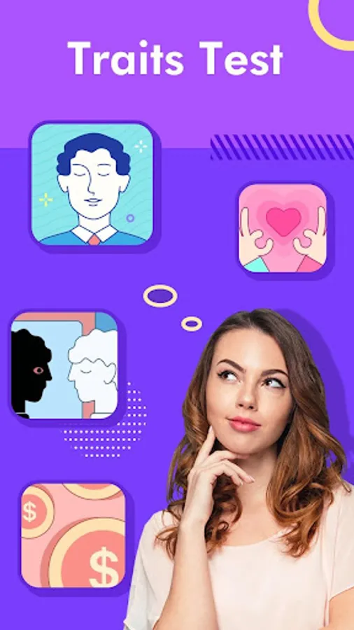 - Intersting tests: deepen our understanding of ourselves by completing the answers to the questions. We provide PALM READING and various quiz questions. After you finish the question, we will provide you with a result.