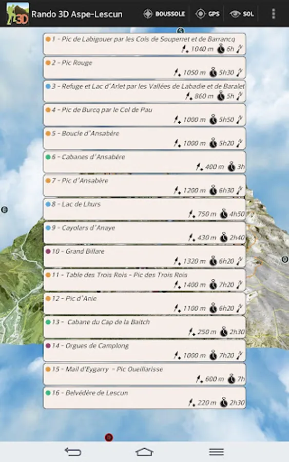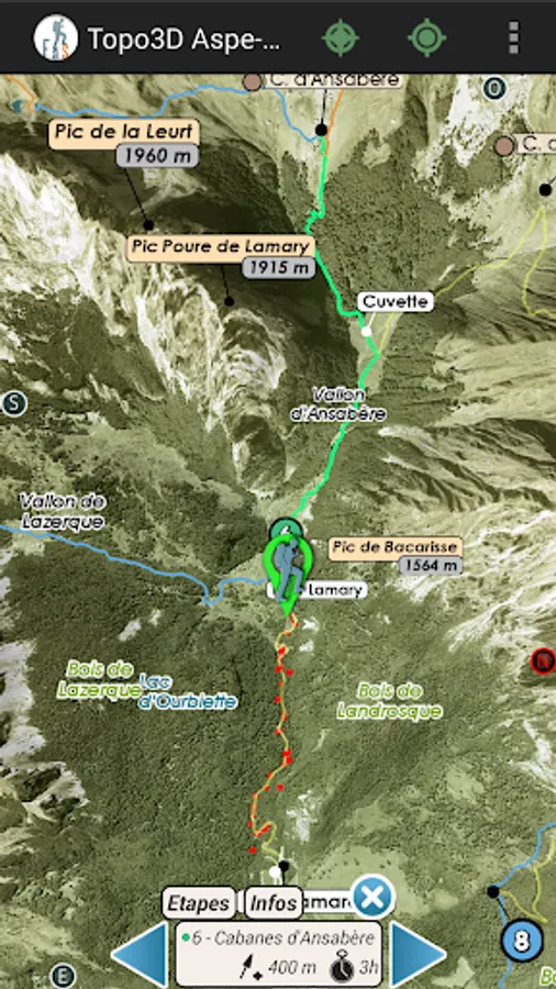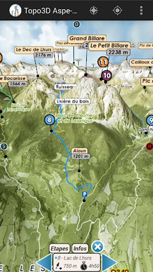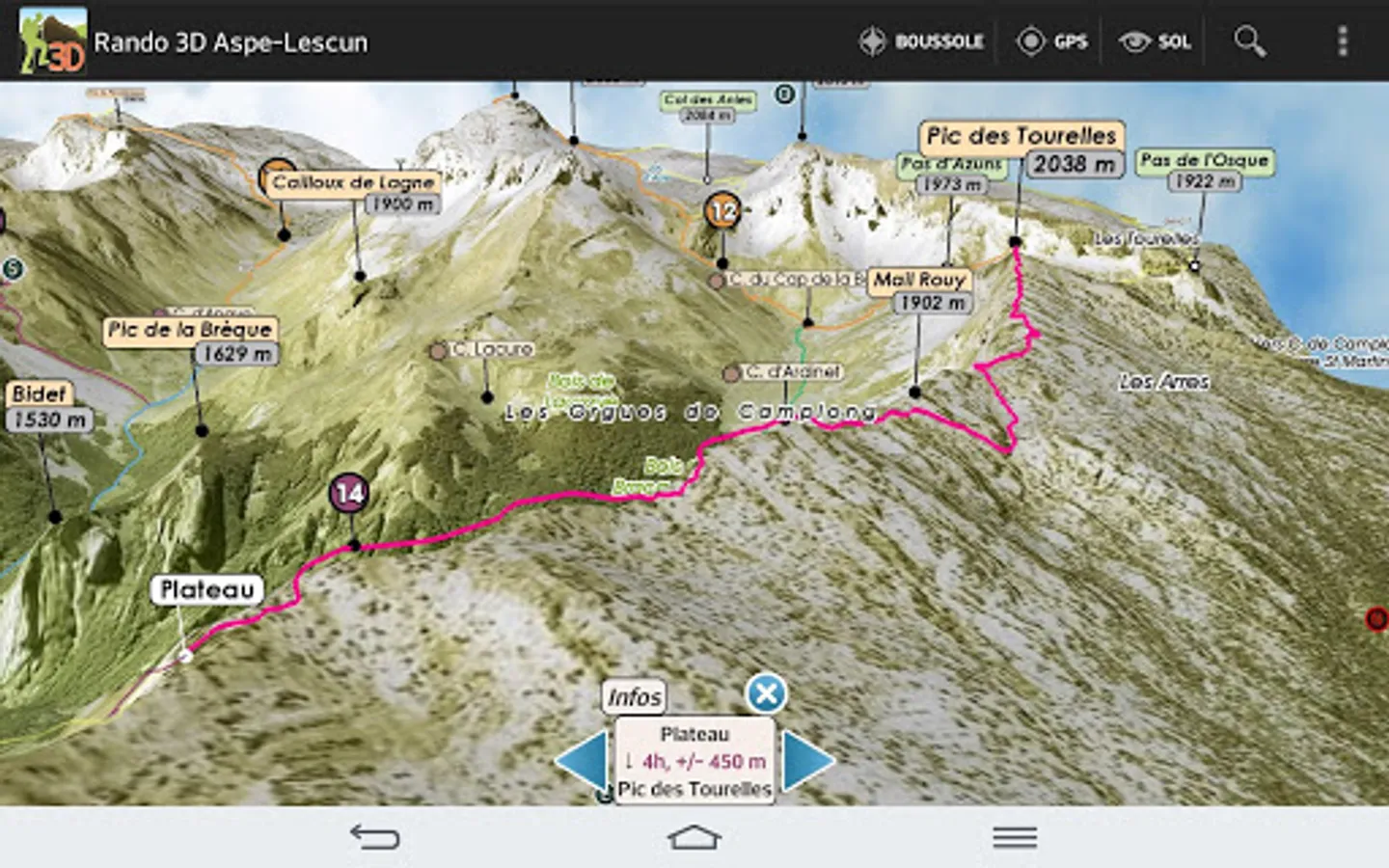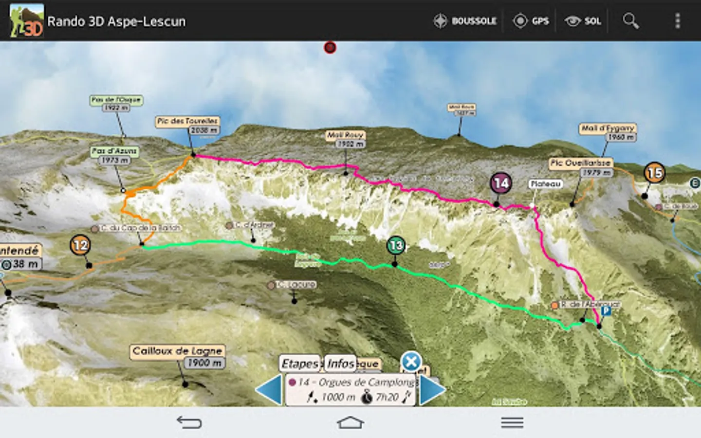 In addition to the described hiking trails mapped, variations and alternative routes, you can import your GPX tracks in the 3D map.
