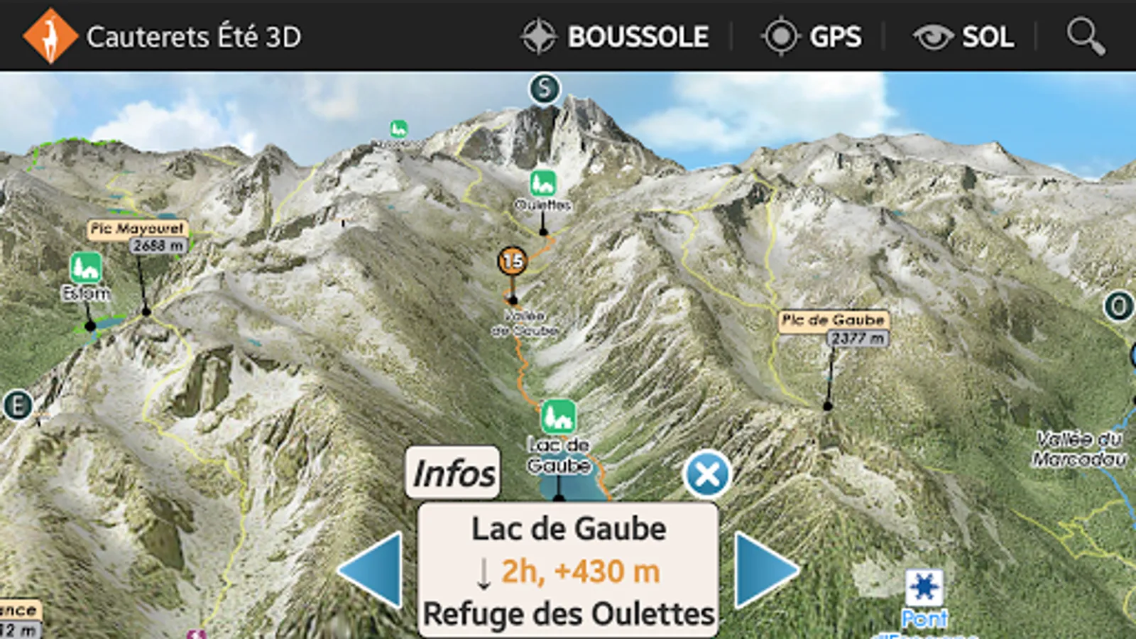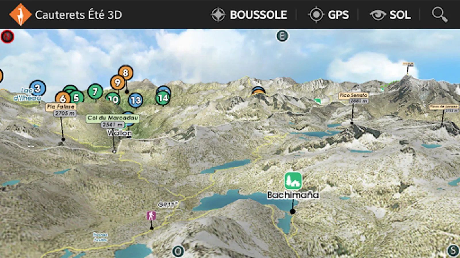 This application describes in immersive 3D, routes Summer hiking Cauterets plan.