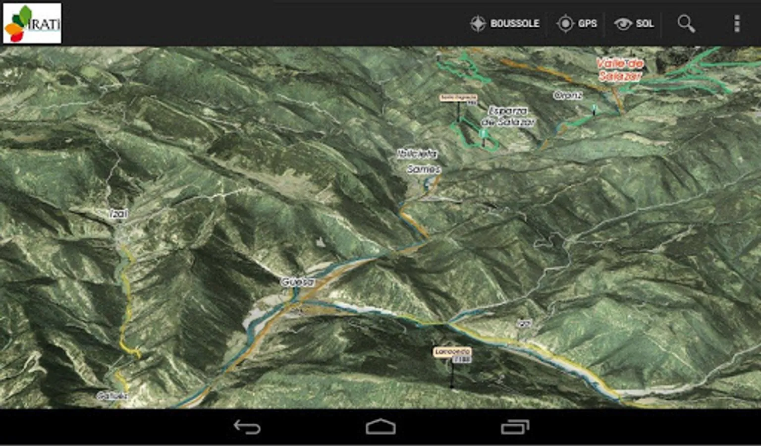 The aerial view and the ground view illustrate the general relief at an optimized level of precision, it is displayed on the screen according to the definition of relief and texture chosen at launch of the application, automatically loaded or select depending on the capabilities of the device used.