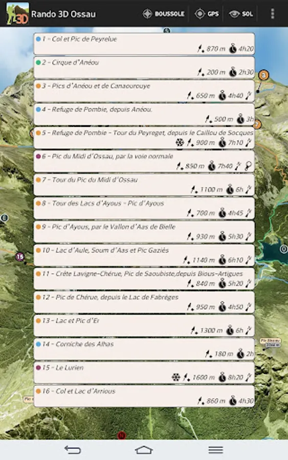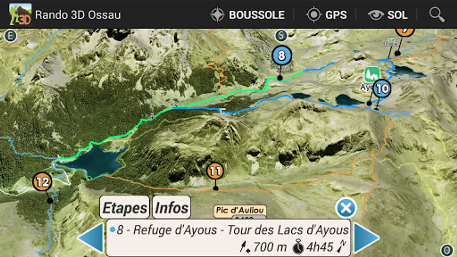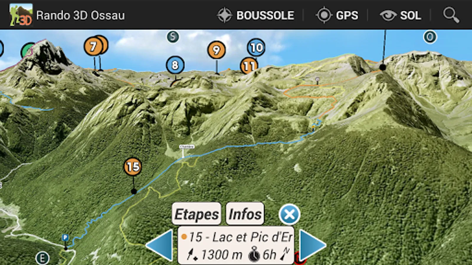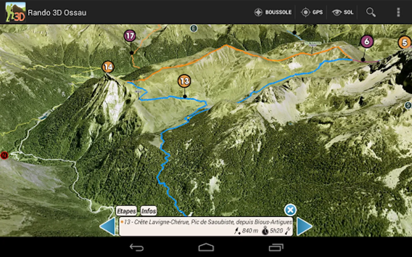 In addition to the described hiking trails mapped, variations and alternative routes, you can import your GPX tracks in the 3D map.